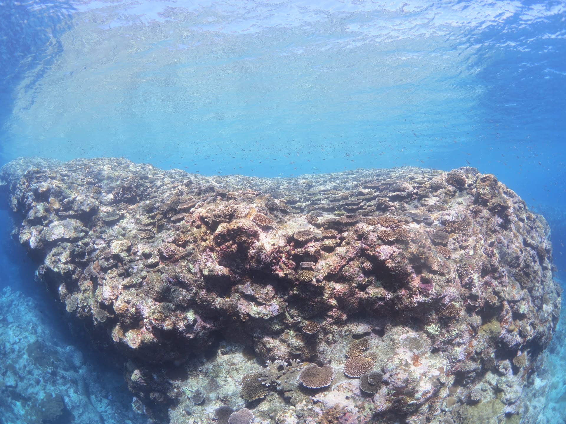 ここに該当する色は、ボニンブルー 粟国ブルー 与那国ブルー、マリアナブルー 共通する点は、火山列島であったり、ドロップオフ、潮の流れがあること。 島の周りは、環礁になっておらず、一気に深くなっているところで多く見受けられる色です。