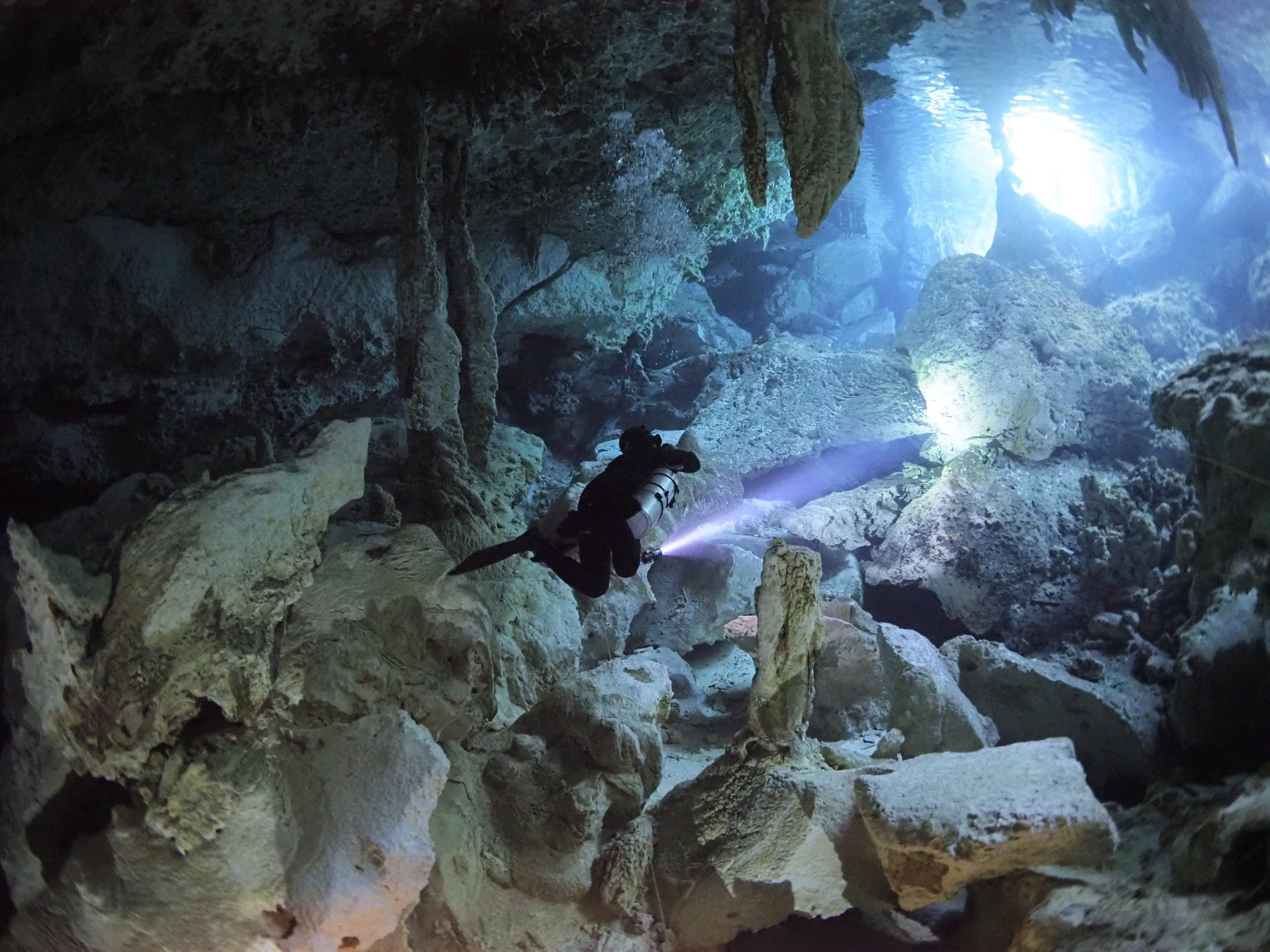 - 安定した中性浮力(サンゴ同様、上下にある鍾乳洞を痛めてしまわないため)