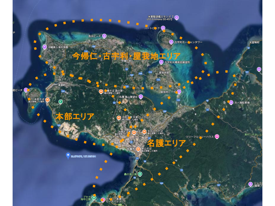 ※北部エリアの定義:沖縄自動車道の終点「許田IC」より以北
