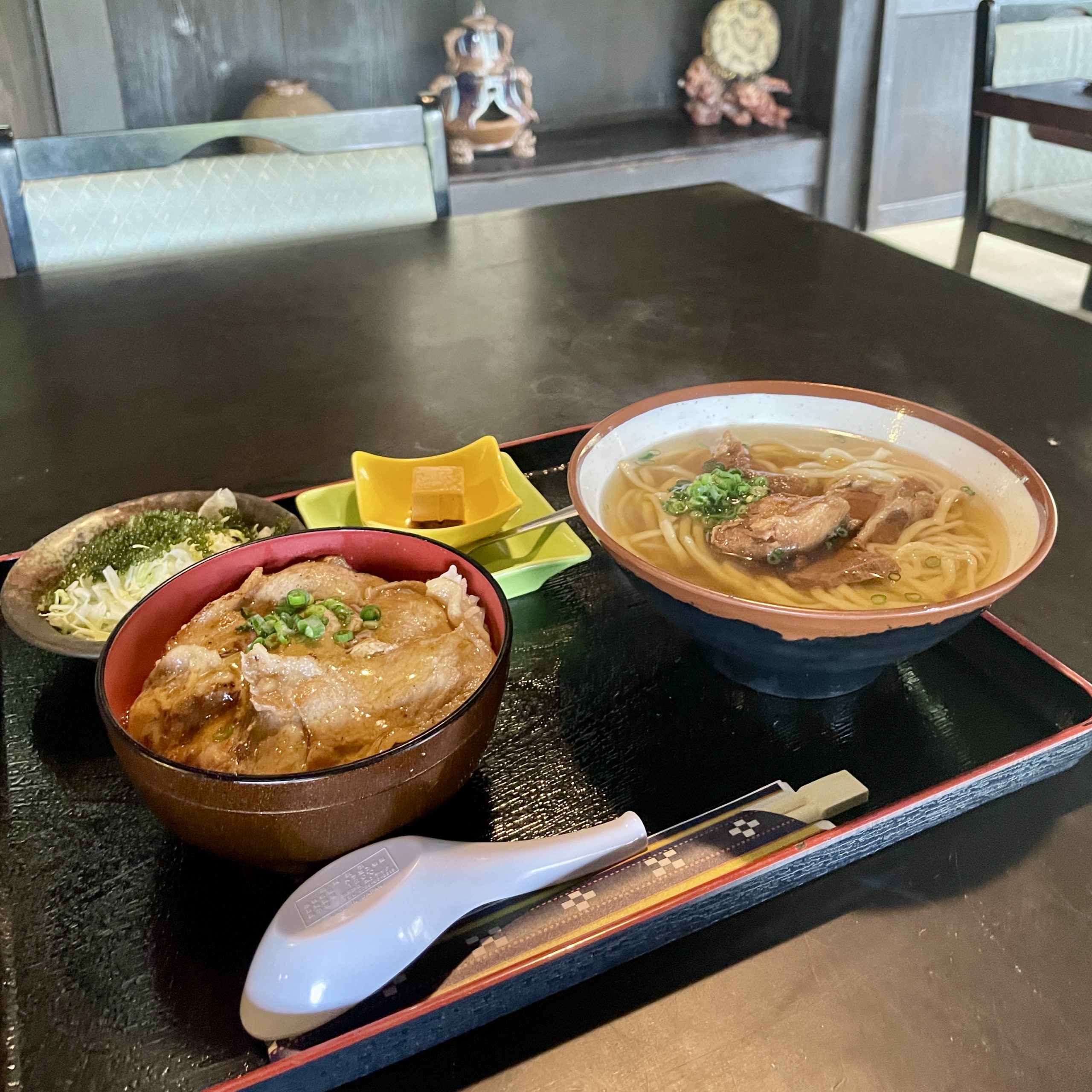 あっさりした豚骨スープと、とろとろソーキの豚丼の組み合わせがGood