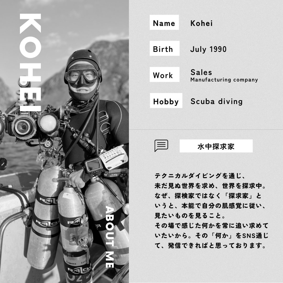 1990年生まれ、会社員として働きながら海の世界を探求するダイバーです。