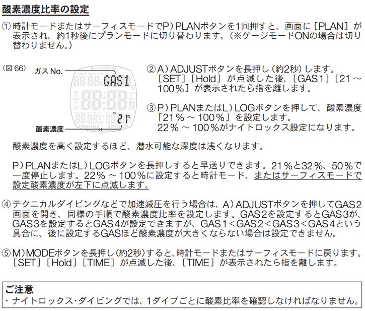 特にナイトロックス使用時は酸素濃度の設定を忘れやすいです。