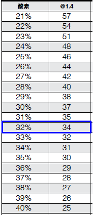 たとえば、酸素32%のナイトロックスを使う場合、