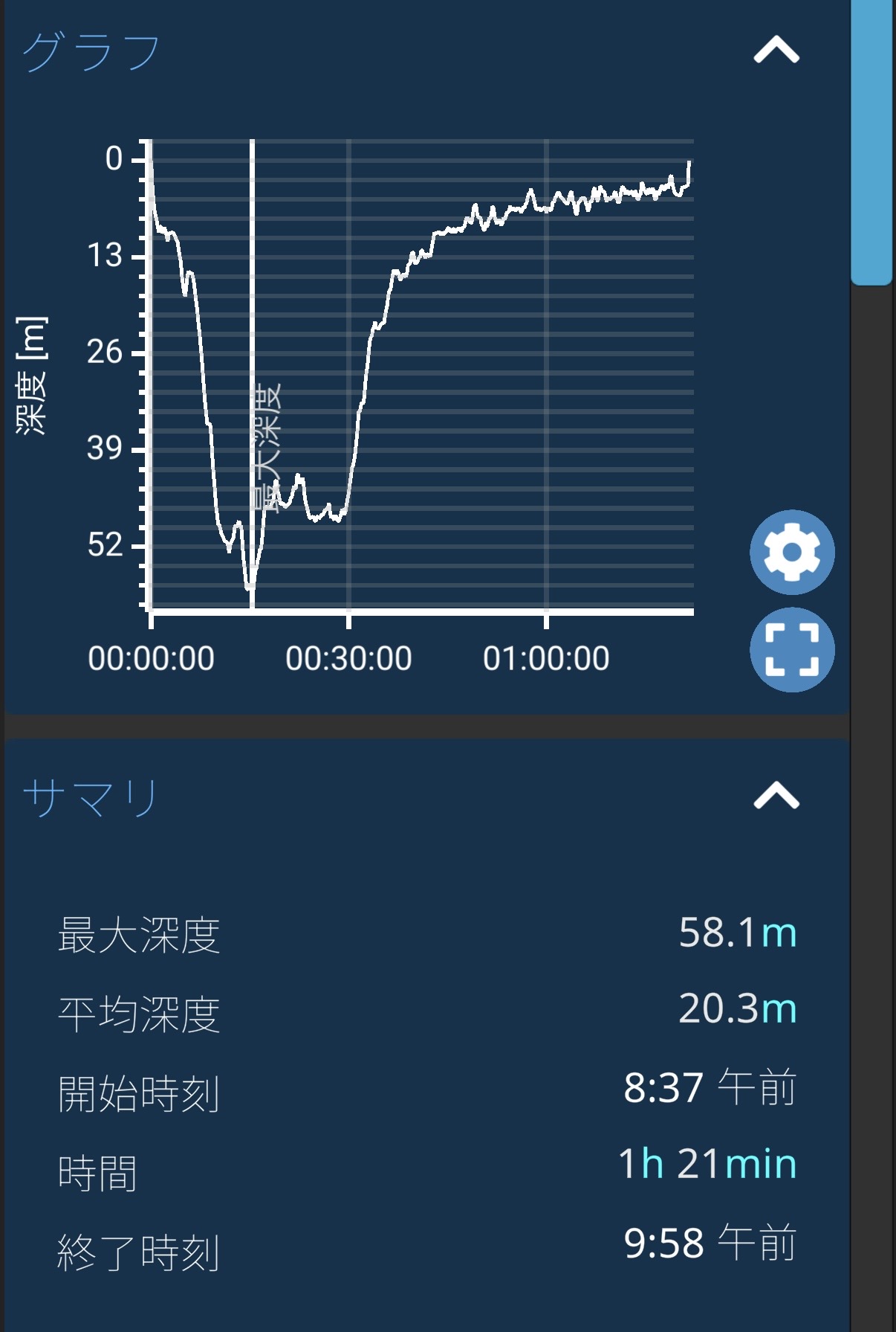 潜水時間や最大水深、浮上速度をデータで振り返ることで、