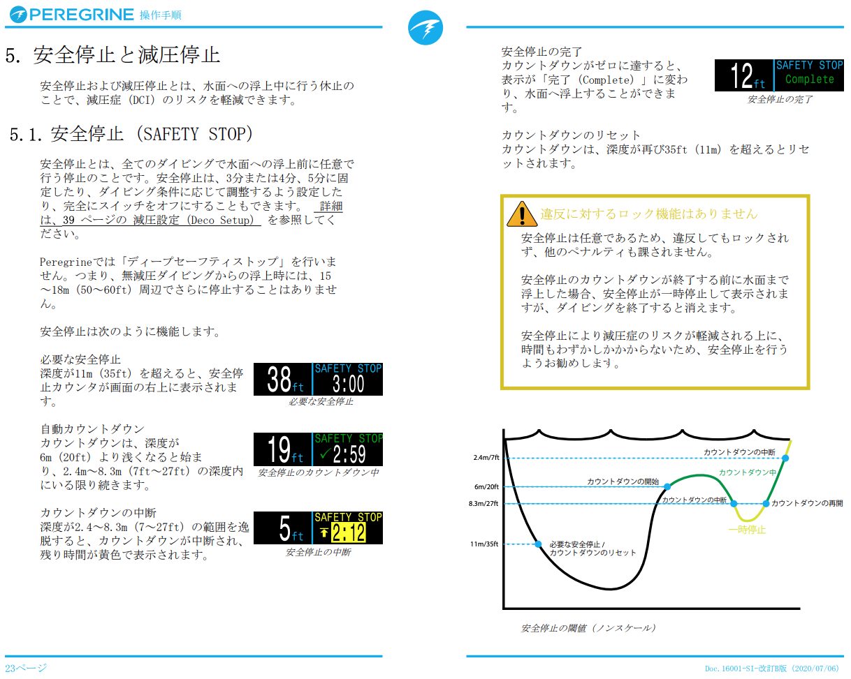 さらに、安全停止が必要な深度(約5m前後)に到達すると、