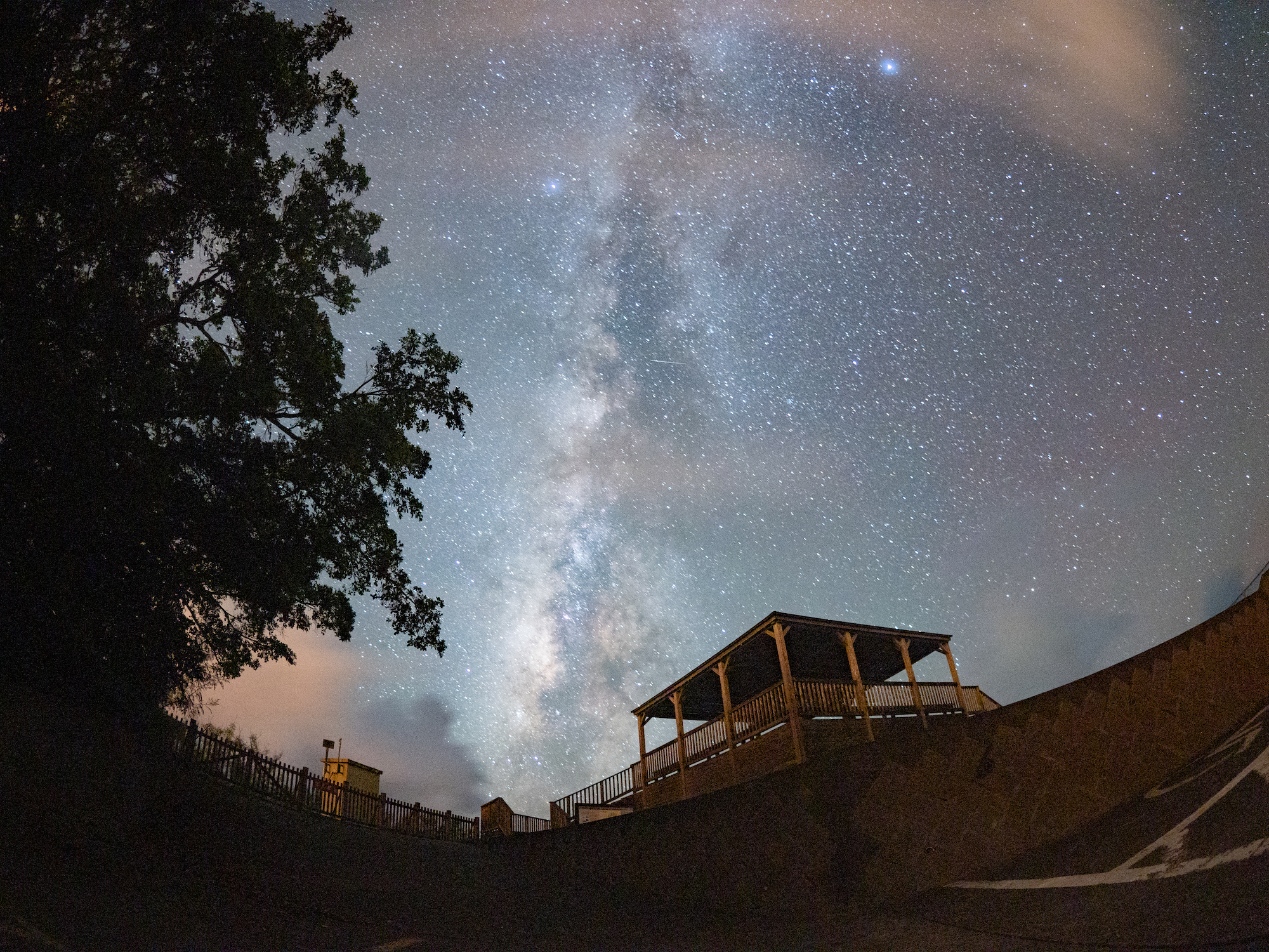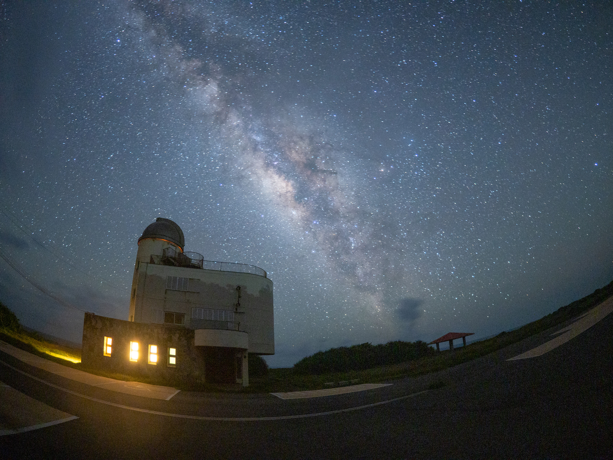星空観測タワーと一緒に撮影した天の川。天体観測を行なっているような雰囲気にもなれます。