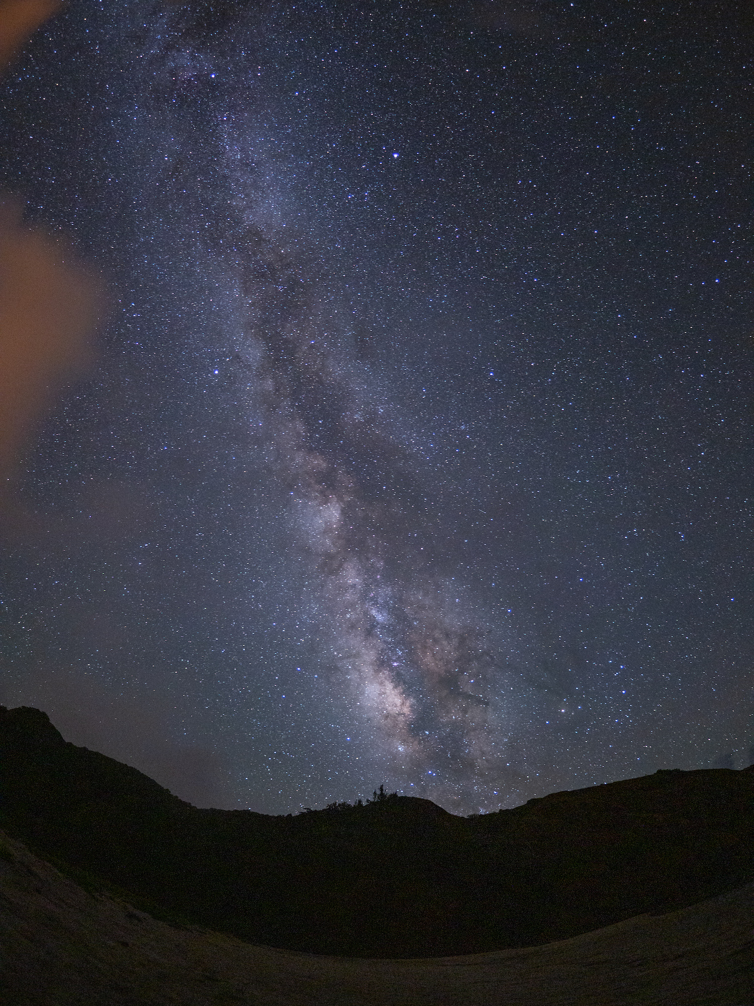 山の中からでてきた天の川、一面空よりは構図を意識して撮影した方が臨場感が伝わります。