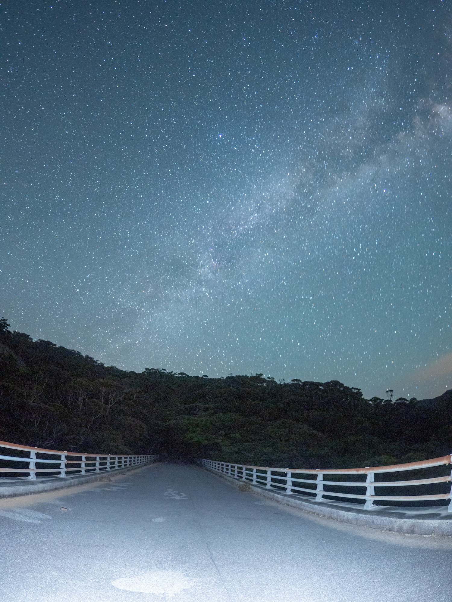 橋の上からの撮影。全く光がないので、周りに注意して撮影してください。