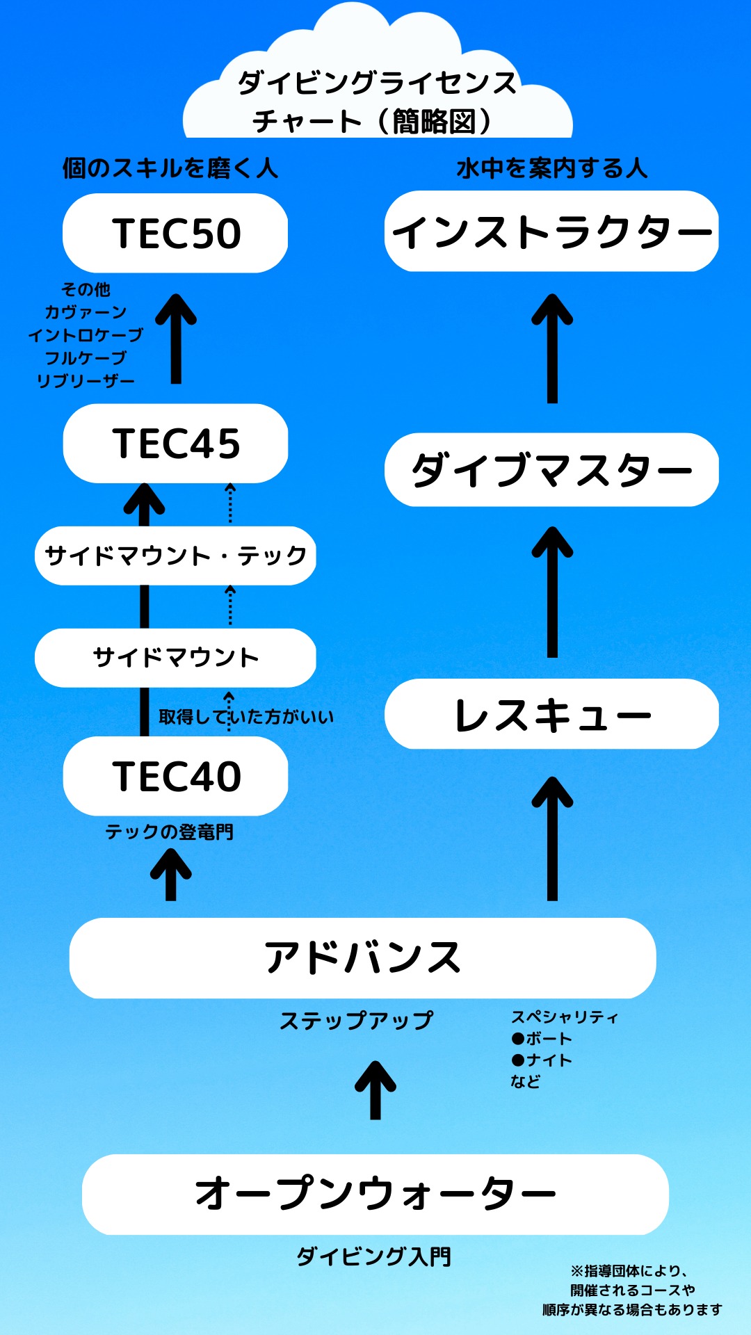 基本的にアドバンスまで取得していれば、ある程度ダイビングは楽しむことができます。※ここではレジャーダイビングとします。
